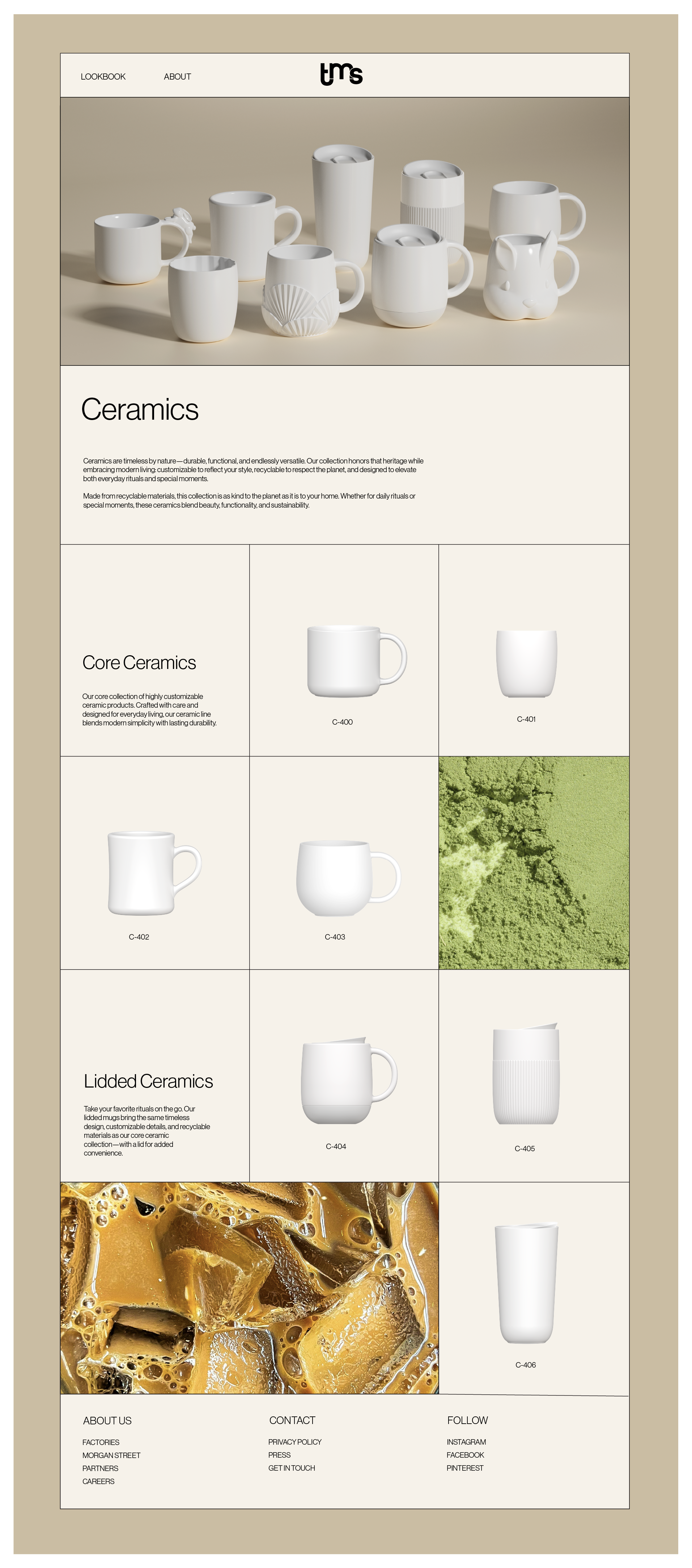 A cohesive brand identity for tms’ beverage-ware design agency was created by establishing a visual language that inspired from concept to shelf. The work included developing a lookbook that showcased design philosophy and product storytelling, building a presentation system with a clear and impactful visual structure, and crafting product designs that merged innovation with everyday functionality. Through intentional art direction, each collection was elevated with imagery, color, and narrative that reflected a distinct creative vision and the lifestyle moments the products were meant to enhance.
